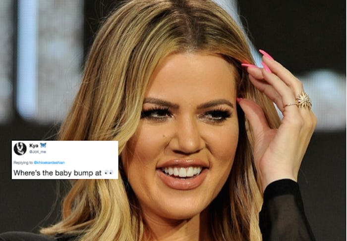 The evidence on both sides is kind of alarming. In the full body shot, some say Khloe does not look pregnant at all but from another angle, people claim to see a bump. The tweets, providing "evidence" of whether she actually is pregnant, are worth seeing for yourself, if only to be entertained by the different theories.