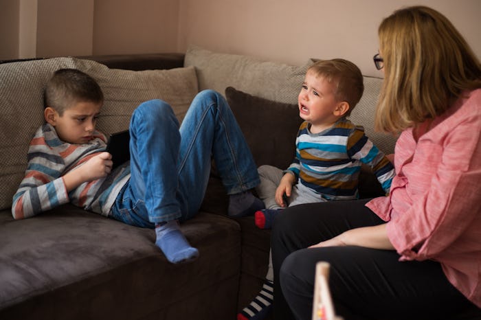 However, if it's the older kids, they are going to need special care. Because Martorell notes that the older the kids get, the more autonomy they need and, frankly, deserve. "As long as the fighting is not extreme, it may be more effective to first let them attempt to work out conflict, staying nearby to intervene if necessary," she says. Like Lis, Martorell says that basic rules like no hitting and no name calling need to be in place, but otherwise, conflict resolution is a learned skill, and this is how it's done.
