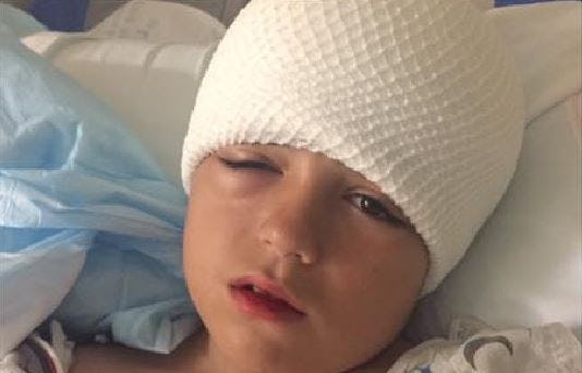Rivera is doing her part to raise awareness by sharing her own story. The first picture shows Jaden when they got to the hospital, the images where he's wearing bandages show him immediately after surgery, and then the top right one shows him with 32 staples in his head. The last shows him getting them removed on April 13, 2016.