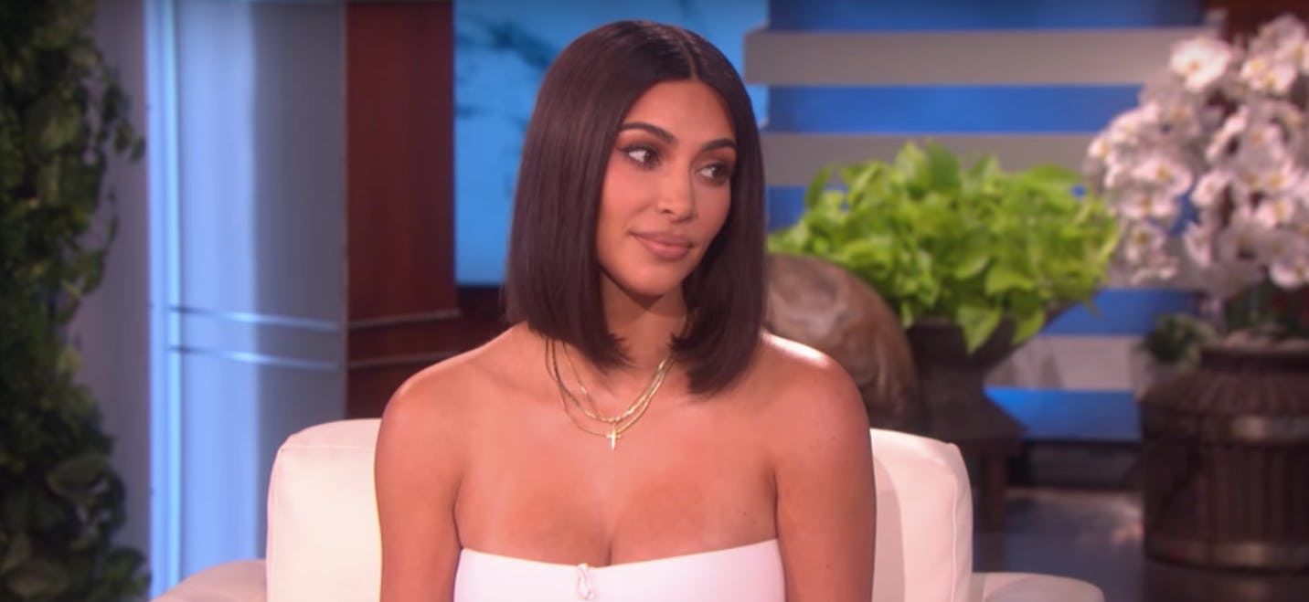 This is the first time any member of the family addressed the scandal in person, and what better person to talk to about it with than Ellen? The talk show host brought Khloé up and asked Kim if she had any thoughts about the whole ordeal. Kim took a long sip of her tea and then spilled it all (figuratively, of course, she was wearing all white).