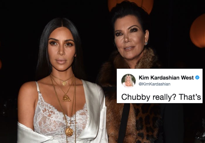 If you say something bad about Kris Jenner, Kim Kardashian West is coming for you. Any fan of Keeping Up With The Kardashians already knows this, and now one tabloid knows it, too. That's because Kardashian fired back at this headline calling her mom "chubby," and basically everyone on Twitter is cheering for her. Because good daughters need to be celebrated at every turn.