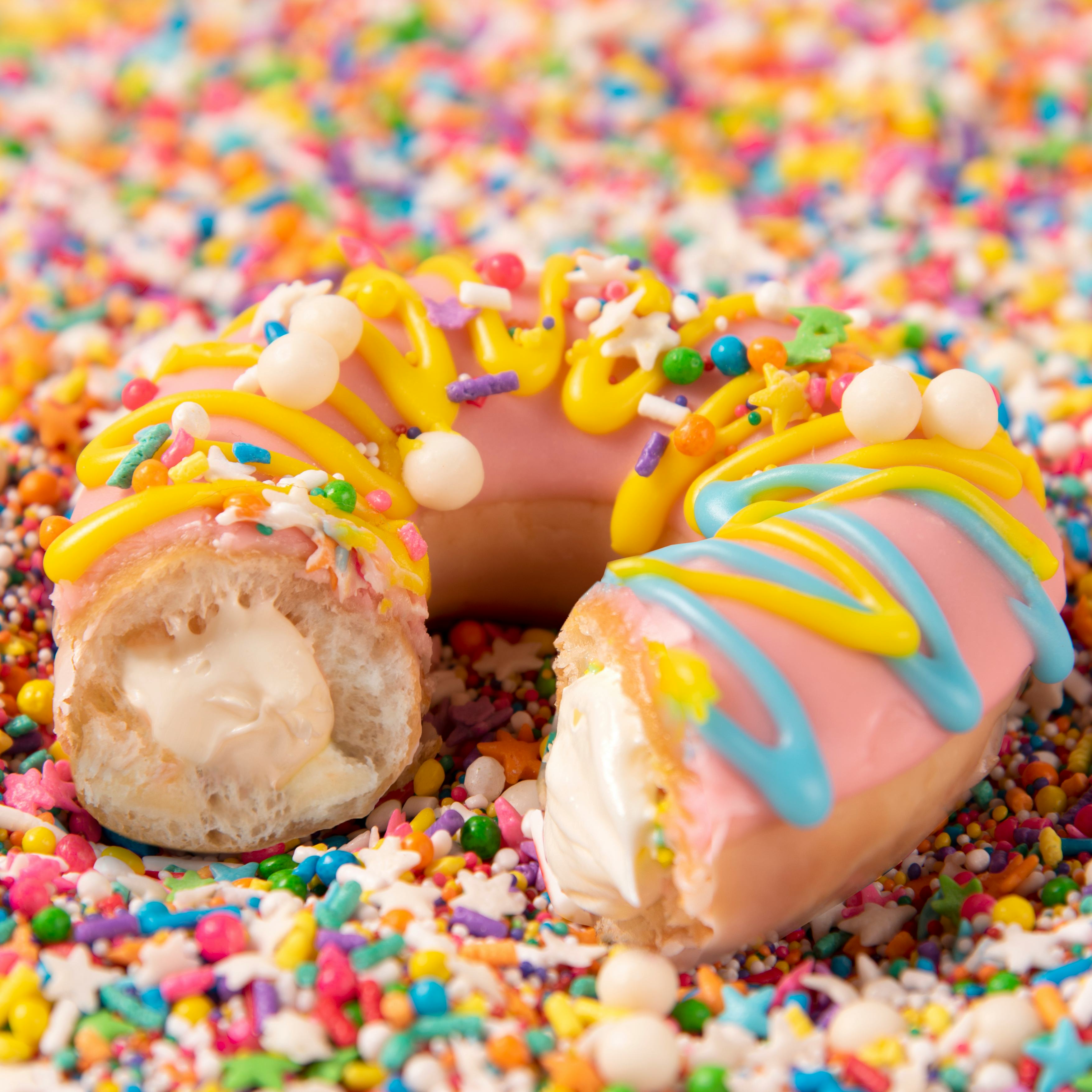 Few things generate instant happiness like the glow of a Krispy Kreme "Hot and Ready" sign. Just a whiff of their mouthwatering aroma can improve your day, and the taste will give you a sugar rush for hours. But prepare for even more sweetness, because Krispy Kreme just dropped cake batter-filled doughnut in honor of the company's birthday. Cue happy dance.