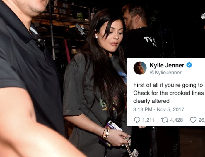 One reality television star and beauty mogul is not having it with all the pregnancy rumors swirling around her. And while she has yet to either confirm or deny any of those rumors specifically, Kylie Jenner has responded to paparazzi photos that claim to show her "bump." Taking to Twitter Sunday afternoon, Jenner showed several paparazzi photos that were taken of her that she alleges were photoshopped. As E! News reported, the photos were posted by the British tabloid, The Daily Mail.