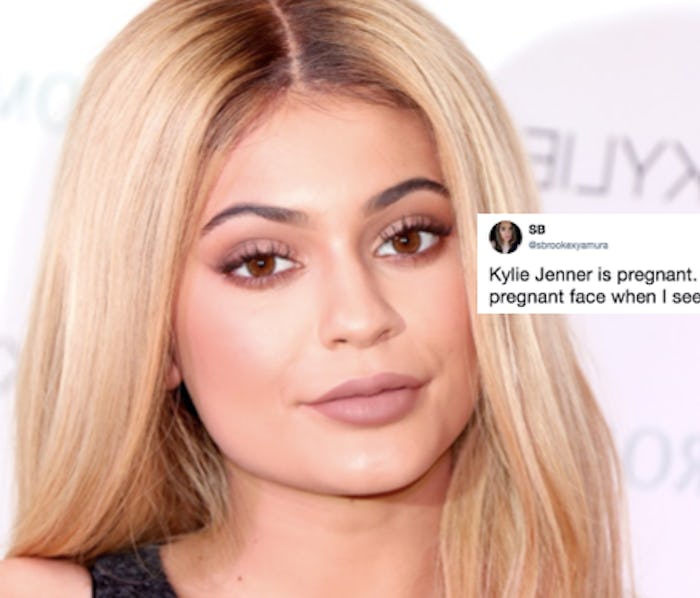 The youngest Jenner sister may have been keeping a low profile lately, but she's anything but off the radar. Every time the 20-year-old makeup mogul posts anything on social media or is spotted publicly by the paparazzi, fans go bananas trying to figure out whether the enduring (but, so far, not confirmed or denied) rumor that she's pregnant is true or not. And, of course, that's exactly why Kylie Jenner's latest selfies have fans talking. The fact that the three shots the she posted to Instagram on Monday feature, essentially, her face and only her face — leaving no photo evidence of a possible bump or lack of one — has not deterred the most diehard Jenner stans in the slightest. Instead, some of them are convinced that her face looks pregnant.