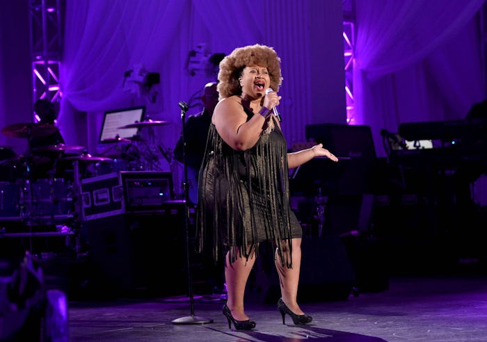 American Idol contestant La'Porsha Renae wowed the audience with a soulful version of "Proud Mary" on Wednesday's episode. In a black flapper dress, Renae interacted with the audience and obviously connected with the three judges who were all smiles, as the orange lights and set went well with the bumping rythym of the well-known hit. When Ranae sang "Proud Mary" everyone freaked out — including judges Harry Connick Jr., Jennifer Lopez, and Keith Urban. She even had Lopez dancing along.