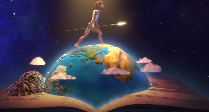 Totally random? Absolutely. (But also hilarious, right?) One of the boys ends up finding a book that fell out of the trash can. Viewers are then transported into an animated world showcasing the wonderful plant and wildlife of our planet.