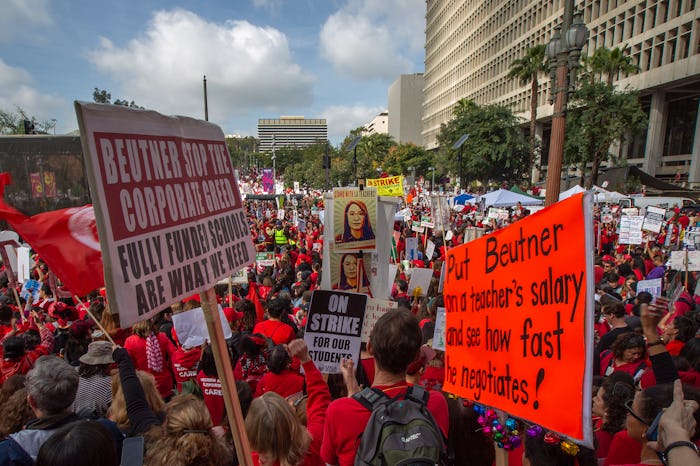 The strike has had public support: Celebrities from Busy Philipps to Marlee Matlin have weighed in on behalf of teachers. Deadline noted that L.A. firefighters decided to march with the instructors as well.