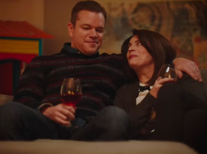 Here's a breakdown: The skit opens as Damon and Strong sit on a couch, sipping wine, and reflecting on their Christmas day. The setting is peaceful with a crackling fireplace and dim lighting with twinkling Christmas decorations. But as the couple begins to reminisce, the camera cuts to scenes that tell us what the holidays were really like.