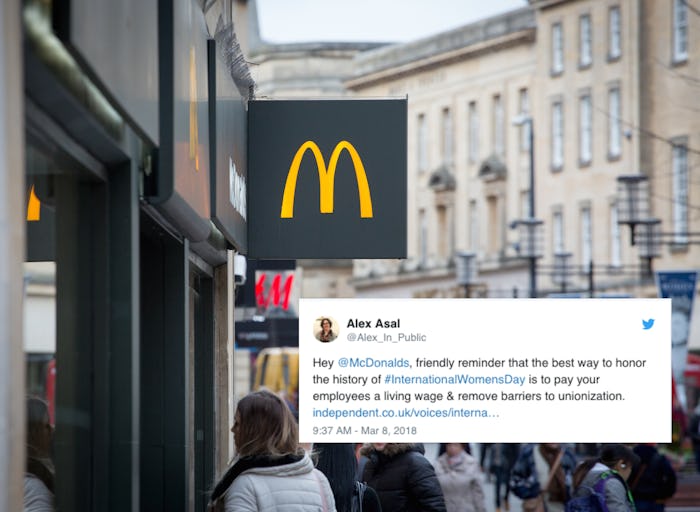 McDonald's did not immediately respond to Romper's request for comment. Of course, the chain does have some supporters on its side. One Twitter user wrote, "This has made my childhood treat relevant again! I will be driving over to the nearest location and support #McDonalds the way it supports women. #InternationalWomensDay."
