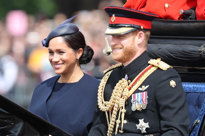 As we all remember, Meghan Markle gave birth to her first son with husband Prince Harry, Master Archie Harrison Mountbatten-Windsor, just over one month ago on May 6. The couple introduced their baby boy briefly to the media two days later, but since that time Markle has been enjoying her maternity leave with her son at the couple's home at Frogmore Cottage out of the spotlight. On Saturday she joined Prince Harry and the rest of the royal family to celebrate Queen Elizabeth's official birthday, her actual birthday being April 21, per Global News. The new mom was all smiles arriving via carriage with her husband, her mother-in-law Camilla Parker-Bowles, and her sister-in-law Kate Middleton.