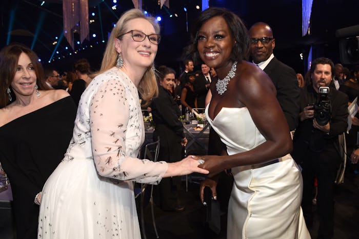 Davis and Streep have been friends since they met in 2008 on the set of Doubt, according to Vanity Fair. They didn’t share much screen time, but Davis's performance during their single eight-minute scene was powerful enough to earn her a Screen Actors’ Guild award. When Streep took the stage to accept her own SAG award for Best Actress that year, she called Davis out as “gigantically gifted” and urged her colleagues to take notice and “give her a movie!”