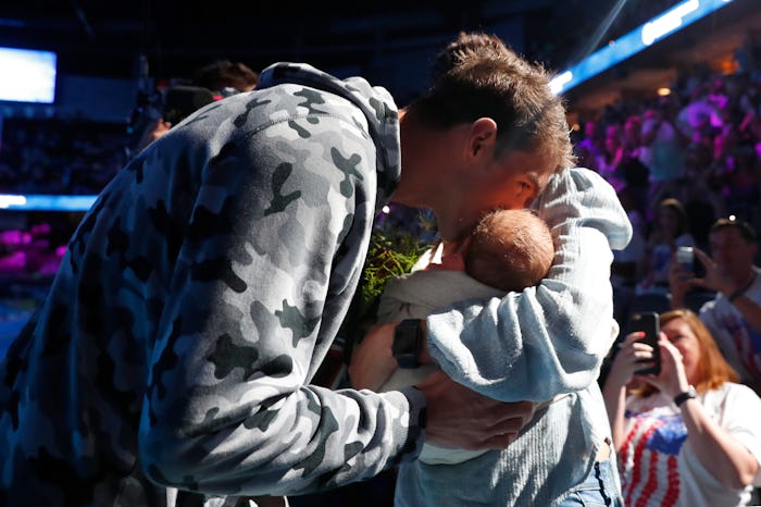 Phelps, the swimming wunderkind with 22 medals under his belt — the most Olympic medals won by an individual in the history of the games (and when you think we used to be playing in togas, that's sort of amazing) — has a new badge of honor: proud dad. The Baltimore native is the father of young Boomer Phelps, who is just about 3 months old and too young to tell anyone how he actually feels about his name. He and fiancée Nicole Johnson have been hitting social media pretty hard with pics of their little cherub, and understandably so. Those cheeks! I. Can't. Even.