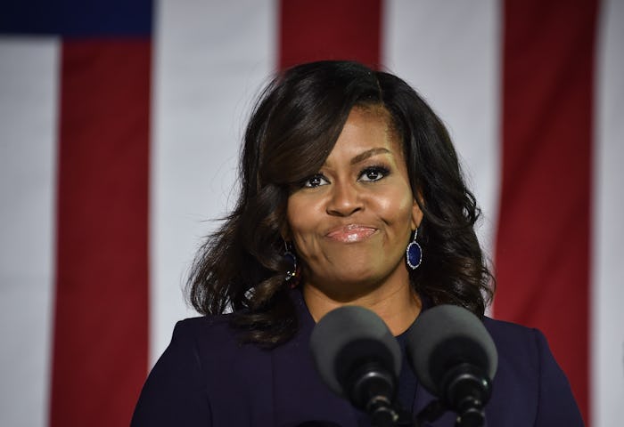 Michelle is many things to the American people — Mom-in-Chief, the number one cheerleader for healthy kids, a fierce dancer, and someone who isn't afraid to tell the American people they can do better. Throughout the 2016 presidential campaign, Mrs. Obama took the political world by storm. She brought down the house during the Democratic National Convention with her now famous, "when they go low" speech. She explained how she talks to her daughters about the ugliness Trump has encouraged in American politics. Here's the passage from her DNC speech, according to MSNBC:
