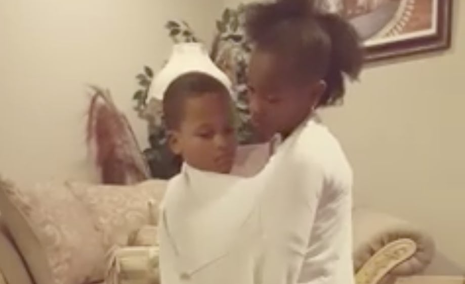 The two have no choice but to sway with each other until their mom tells them they can stop.