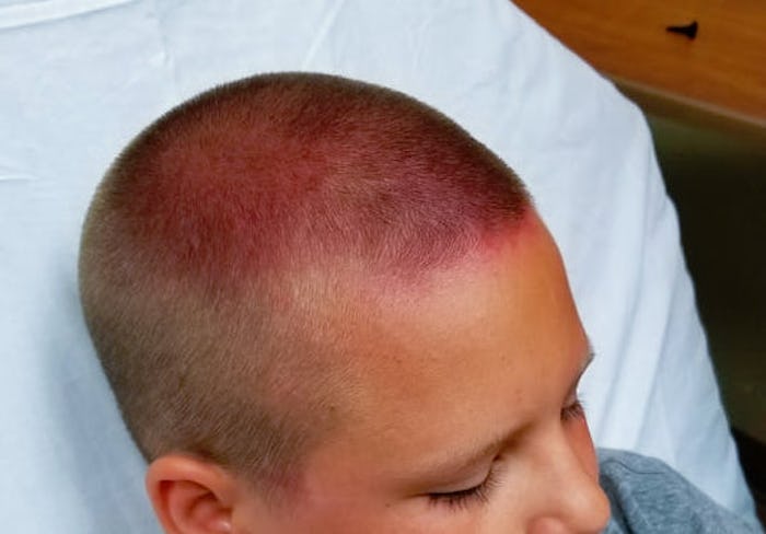 A number of kids came inside to tell Jordan and her husband that their son didn't feel well and that he was saying his "brain hurt." And when they found him, it appeared as though the top of his head was spray painted or burned. The blood vessels in his eyes and eyelids had "burst from the extreme pressure," Jordan shared on Facebook.