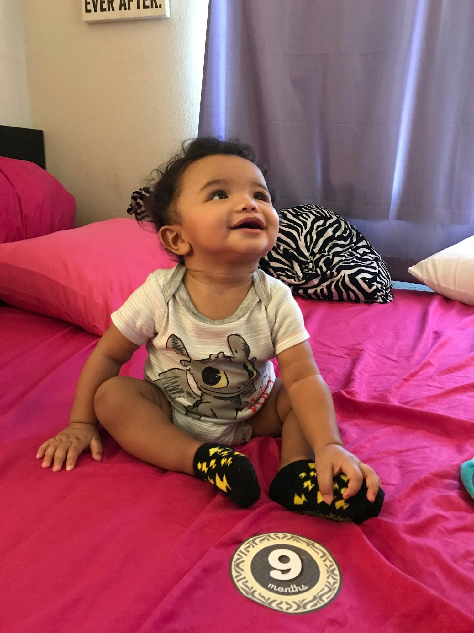 We are playing on the bed with our 9-month-old son. It's not terribly rambunctious, more of a winding-down. Kisses and cuddles, and Kai laying his head on me as if he's about to go to sleep. Our other kids have gone to bed, and it's just me and my husband enjoying some baby time together. There is a pillow on the end of the bed, and we are both stationed around him, feeling like it's a king-size bed and we have done this with all our kids so it is fine. That's when my baby lunges toward the pillow at the end of the bed and disappears over.