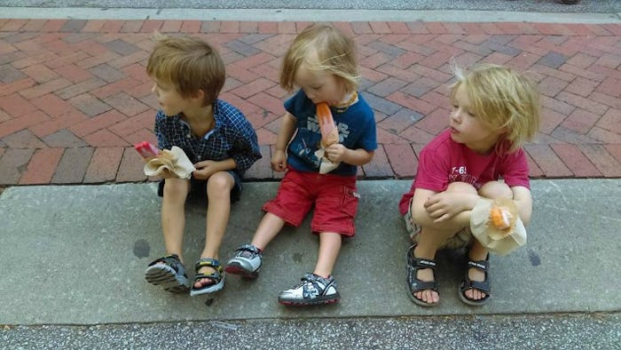 This means, of course, that he’ll be awake until all hours of the night, which is no problem. We’ll put his brothers to bed then hang out. At some point, we’ll put on the TV show Puffin Rock so he doesn’t pester us. Then, eventually, he’ll fall asleep, probably sometime around 11 p.m. It’s kind of a pain, because it means my husband and I don’t always get alone time at night, but I just can’t stand to wake a sleeping baby.