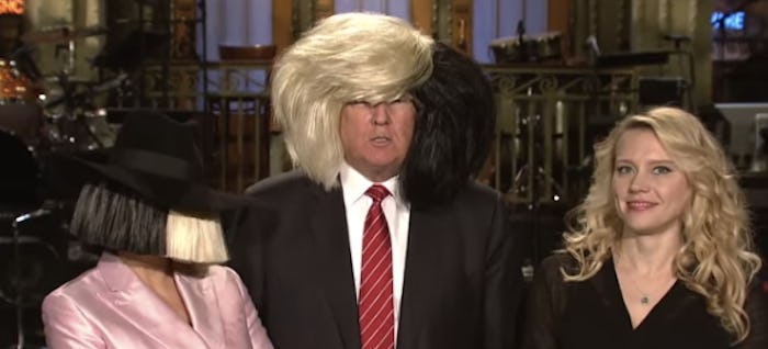 Inevitably, get the interestingly coiffed Sia and Trump in the same room, and that only means one thing — hair jokes. And that's exactly what those who watch the promos will get, with some assistance from cast member Kate McKinnon. (See above.) Is it too much to hope that SNL will avoid poking fun at Trump's appearance this Saturday and instead skewer his flawed political platform?
