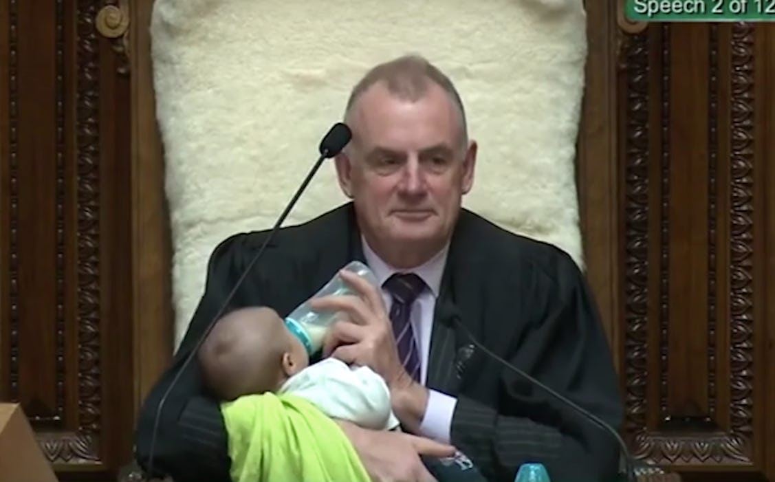 When This Lawmaker Brought His Baby To Work, New Zealand's Speaker Lent A Hand