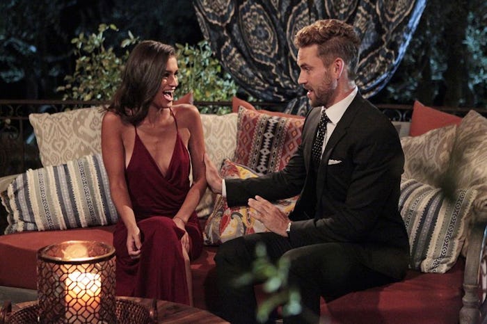 So it wasn't even all that surprising when Nick gave his rose to Corinne, sending Taylor home. Corinne seemed warm, vulnerable, and honest throughout the whole date, even when she was throwing Taylor under the bus. The tarot reader said that she sensed an emotionally intuitive water sign in the group, and Taylor jumped to the conclusion that she must be the water sign in question. But Corinne is actually a water sign, too. So it's possible Taylor read the whole situation in reverse.