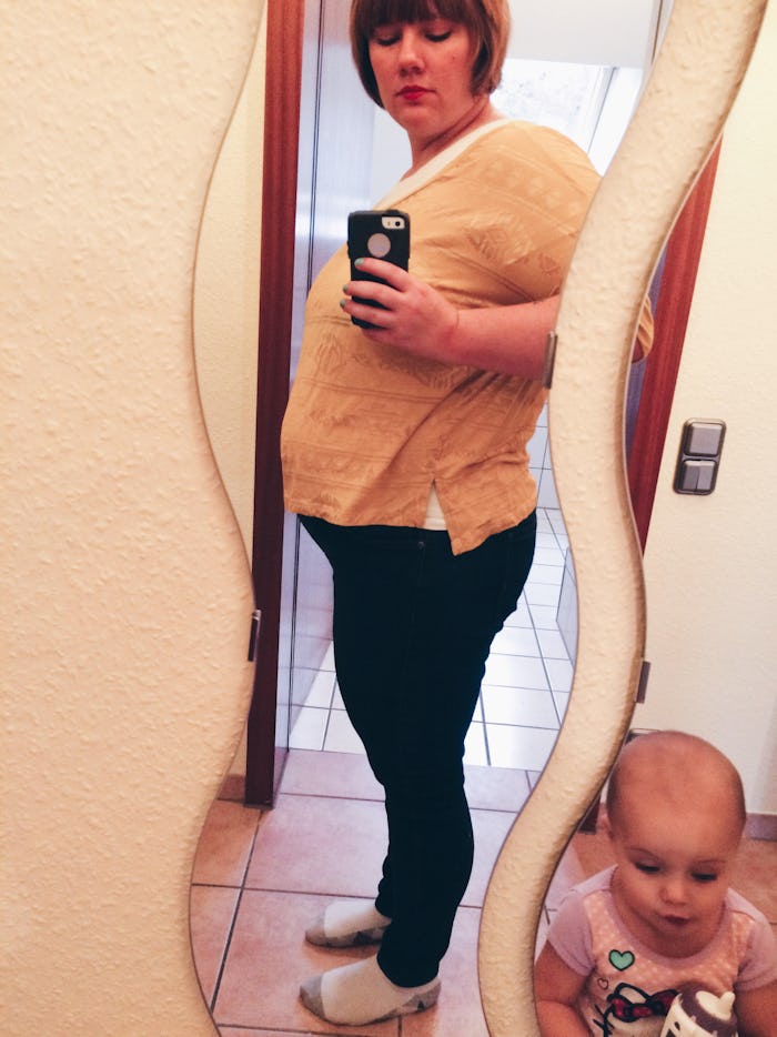 Then people started making comments about my body, which made me realize that not everyone thought the way I did about postpartum bodies. Once, I was at the grocery store when a lady complimented my six-month-old daughter, who was riding in the cart. “And she’s ready to be a big sister already!” she declared as she eyed my tummy.