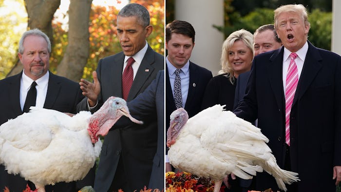 Thanksgiving is a holiday full of traditions, especially for the person in the highest office of the country. And among all the presidential traditions, one that Americans look forward to every November is the presidential turkey pardon. Back in President Barack Obama's day, the pre-Thanksgiving event was an opportunity to hear A+ dad jokes. Now that Donald Trump has been in office for a few years, the vibe of the tradition is a bit different. With Thanksgiving 2019 just around the corner, now seems like a good time to compare Obama's Thanksgivings in the White House with Trump's.