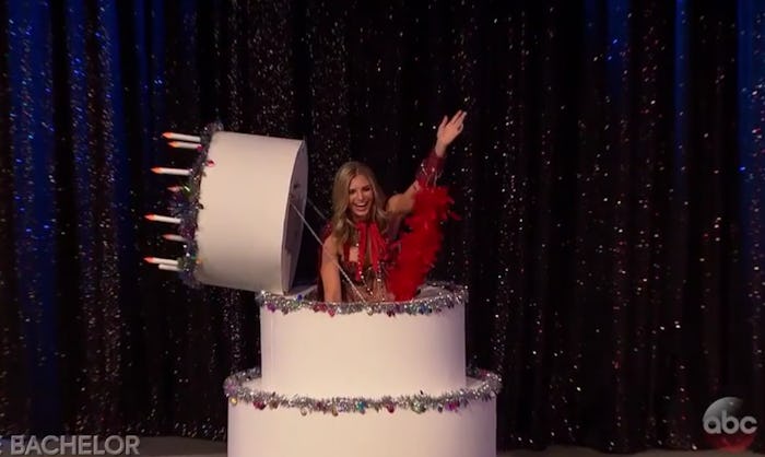 Proving she's a little bit country, a little bit rock n' roll, Olivia lets her wild side show on Monday's new episode of The Bachelor. According to ABC, the erstwhile news anchor steps out of her comfort zone (and a cake) to perform a showgirl-inspired routine at a talent competition held during a group outing in Las Vegas. But while fans will likely have mixed opinions about the performance, slut-shaming Olivia's strip-tease talent should be the last thing on everyone's mind.