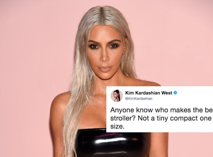 Kardashian fans have been anxiously following all the pregnancy news out of the famous family, and with a new tweet, Kim Kardashian has touched off a cascade of new speculation. Now, people are totally convinced that Kardashian's surrogate is pregnant with twins because of a tweet she penned, asking for very specific stroller advice. The reality star, who is expecting a baby via surrogate with husband Kanye West, asked for thoughts on a double stroller. Needless to say, fans are freaking out over the possibility that she might be having two new babies instead of one.