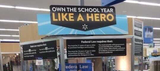 There are many things that are shocking about back-to-school shopping, like the amount of glue sticks elementary school teachers think your kid needs or the price of tiny sneakers, but it's rare to think that guns would ever be in play. But because this is America, on Wednesday afternoon a Twitter user posted a picture of just that: A Walmart back-to school display of firearms.