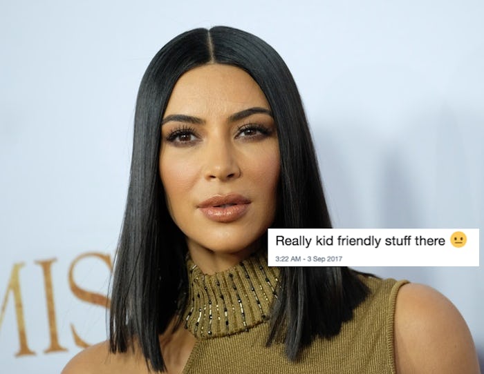 Kim Kardashian is one of the most entrepreneurial women around. People will buy (or buy into) anything she puts her name on and endorses. This is made clear through her contour sticks, children's fashion line, insanely huge social media following, and her long-running staring role on Keeping Up With The Kardashians. And in case you missed it, Kardashian also has her own app, Kimoji, where people can communicate through Kardashian reactions and has merchandise for that. But people aren't happy with some of her latest merchandise for Kimoji right now. Yes, people are pissed about Kardashian's "back-to-school line," but they have some pretty ridiculous reasons as to why.