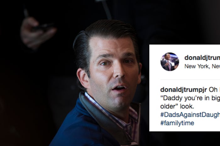 Sometimes it surprises me that my late father was never one of those dads who didn't want his three daughters to date people. He was an Italian immigrant who skewed traditional when it came to family and gender roles, but he never said or did anything that'd seem controlling of our dating lives (that was all my late grandfather). The Trump men, on the other hand, I'm not surprised about. In fact, people are trolling Donald Trump Jr. for the “creepy” way he captioned a recent photo of his daughter. And, considering what he wrote, I can't say I blame them.