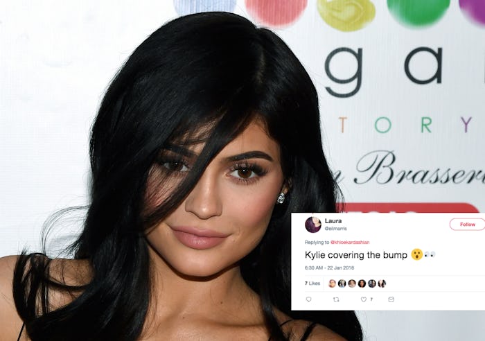 Us Weekly shared a few images from the campaign on Instagram, and fans immediately latched onto Kylie's calculated coverups. "Hm look at Kylie COMPLETELY COVERED IN BOTH," commented one user. "Kylie covering up her baby bump," added another. "So is Kylie pregnant or not," read another comment. "Odd that Kylie is the only one hiding her belly 🤔🤔🤔," read yet another comment.