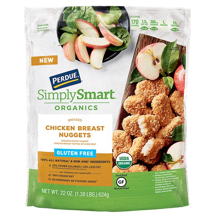 Perdue didn't immediately return Romper's request for comment on the matter, but in a post on the brand's website, the company announced it "has voluntarily recalled 68,244 pounds or approximately 49,632 bags of frozen, fully cooked organic gluten free chicken breast nuggets," specifically those manufactured for its Perdue Simply Smart Organics brand.