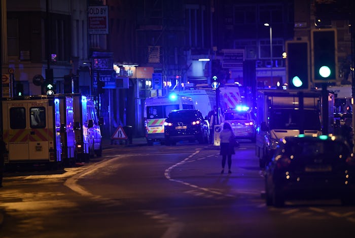 According to The Associated Press, police are officially calling these attacks "terrorist incidents." The term doesn't do these pictures justice — they are more than just terrorist incidents. They're chilling, frightening, and heartbreaking. Despite Vauxhall no longer being an issue, it seems the world can expect more pictures of the scenes — BBC has reported that an eyewitness claimed to hear more explosions on London Bridge right before 9 p.m. EST.