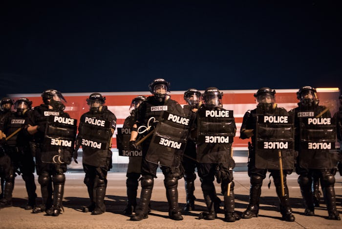 Anger over the shooting grew as news of Scott's death spread, and according to NPR, protests initially started out peacefully. But as the evening wore on, the growing crowds started to turn violent, and police arrived in riot gear, firing rounds of tear gas at the protesters, who "were on their knees and shouting and saying, 'Black lives matter.'" and "hands up, don't shoot." Early Wednesday morning, protesters held up traffic on Interstate 85, and according to CNN, then began removing items from the back of stopped trucks, lighting them on fire. Others were seen smashing windows and the windshield of a police van, and according to NPR, a television news crew also reported that protesters were rocking their van, which had been parked near the apartment complex.