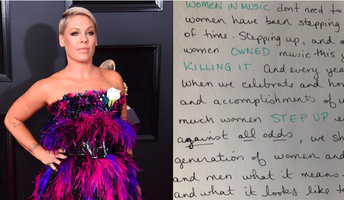 Portnow's words were frustrating because they totally missed the point, but Pink was there to explain it. She posted the perfect response in a handwritten note to her Twitter account. She even changed up her ink color for emphasis, just in case what she was saying wasn't already clear enough. She wrote: