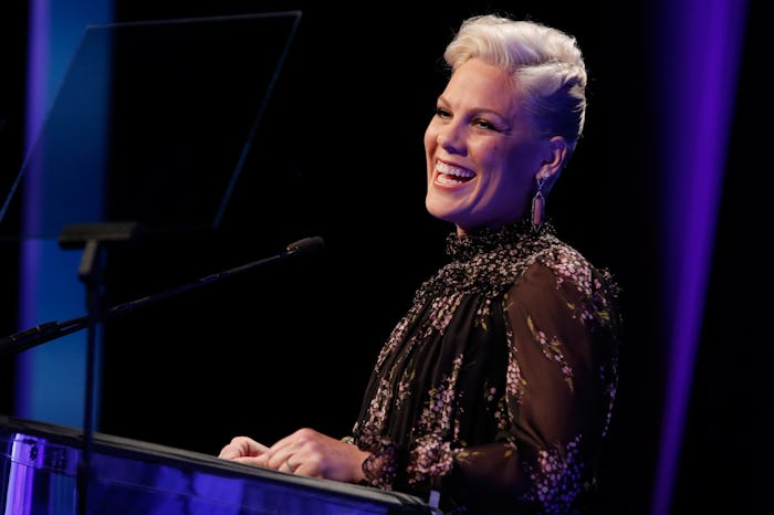 Pink captioned Friday's Instagram with "Jameson can multitask too," as she flashed a wide smile while her son tried his hand at highlighting and contouring mom's boob. It's a super sweet photo of Pink and her son that isn't unique to the pair, either. In 2012, Pink posted a picture of her breastfeeding her daughter Willow as she took a break during a photo shoot.