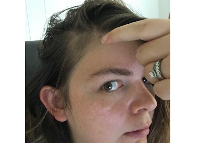 Well, the hair sticking straight up as it grows back just has to do with new baby hair. But why are my friends and I balding only at our temples in the first place? Testosterone. Dr. Jamil Abdur-Rahman, OB-GYN and one-half of the Twin Doctors for TwinDoctorsTV, tells Romper in an email interview that this type of hair loss is still considered "male pattern balding" — even though we are ladies —and that it has to do with elevated testosterone levels.