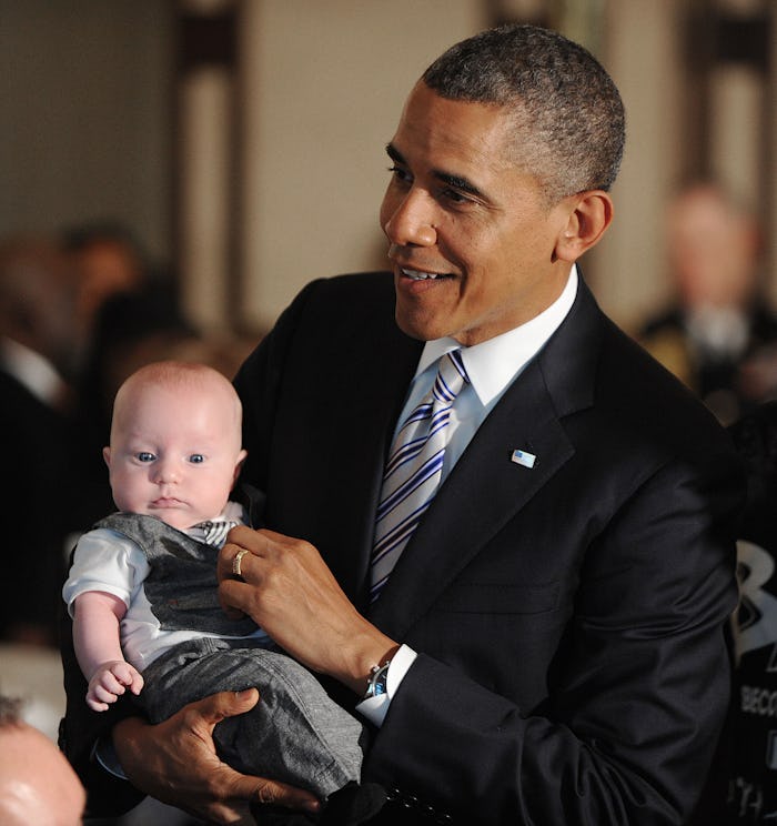 Just in case you've been losing faith in feminism and politics this week, President Obama signed the Babies Act on Friday, making it a requirement that baby changing stations be made available in all bathrooms of public buildings, even the men's room. Because dads need to change diapers, too. It's not much to counteract say, presidential nominees talking about grabbing women by their genitals, but sometimes it's best to focus on the little things. Like men being able to change their own baby's diaper in a public restroom.