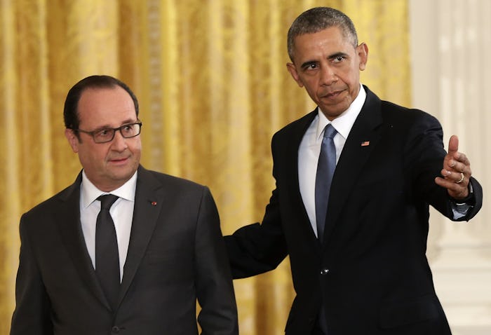 Tuesday morning, President Barack Obama met with French President François Hollande in the White House to discuss the international campaign against ISIL. Afterwards, the Obama and Hollande held a joint press conference, during which the two heads of state laid out some of their plans in the ongoing fight growing terrorist threats. Obama opened the conference by first offering Hollande and France condolences for the Paris attacks. "This barbaric terrorist group, ISIL or DAISH, and its murderous ideology, pose a serious threat to all of us," Obama said. "It cannot be tolerated. It must be destroyed. And we must do it together."