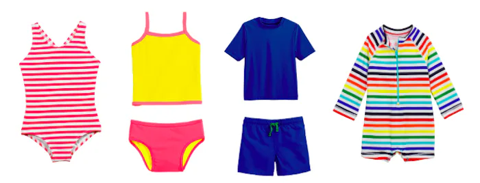 If you're really feeling these paired down swimwear offerings, you can also stock up on other spring kids' staples, like the super versatile short sleeve striped skater dress ($20) or the cuter-than-cute unisex raincoat ($34) which is primed for puddle-jumping adventures.