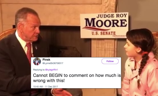 This was understandably a little uncomfortable for many to watch, and people on Twitter weren't too pleased that this PAC would send a young girl to interview Moore, considering the nature of the allegations made against him.