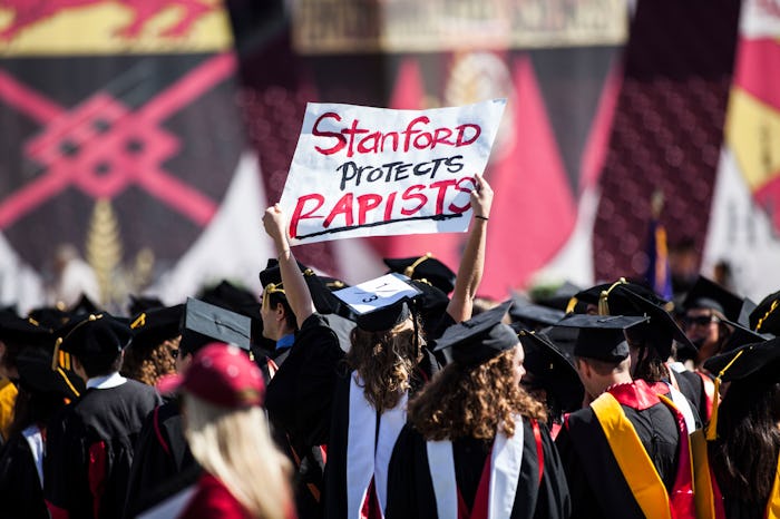 Turner's victim, whose name has not been released, provided a powerful statement in court that brought the case to the forefront of social media after the attack earlier this year. Many who stand in solidarity with the young woman have taken to the internet — or even to the property surrounding Turner's home in Ohio— to protest not just his act of violence, but the responses by Stanford University and the state of California, which many believe were too lenient and in favor of Turner.