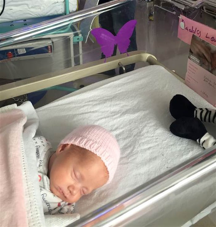 There are many hard lessons you are forced to learn when you give birth prematurely, but when my twins were born at 25 weeks gestation in 2012, one of the most difficult was realizing just how often parents of multiples end up losing one (or more) of their babies. It's the kind of heartbreak that is hard to even imagine, and one where there really isn't anything to say that could make it better, but after living through it themselves, parents Millie Smith and Lewis Cann have set out to help bereaved parents who have lost a child in the neonatal intensive care unit with some very meaningful butterfly cutouts, according to Today. Purple butterfly stickers might be coming to hospitals, and they could have a big impact on the way grieving parents are supported in the NICU.