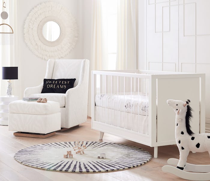 Looking to add a touch of glamour to your baby's nursery? Have an older child who's in the midst of developing her personal style, which is code for sequins (lots of sequins)? You're in luck. Today, Rachel Zoe's Pottery Barn Kids and Pottery Barn Teen line officially launches. The collection encompasses decor and accessories that are functional yet glamorous for the nursery, playroom, and bedroom. We're talking gold embroidery and velvet. Faux fur, animal prints and geometric shapes. Sequins and metallics. "I die!" to quote Zoe, the designer, editor, author, and entrepreneur, who you may also know from her reality TV show, The Rachel Zoe Project, which aired for five seasons on Bravo.