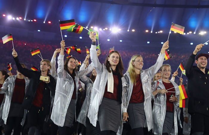 During the Rio Olympics opening ceremony on Friday night, each country paraded in front of the crowd and carried their country's flag with pride. But the opening ceremony isn't just a time for performance and flag display — it's also the time when countries publicly unveil their Olympics outfits. And reactions to Germany's Rio opening ceremony outfits were not nice.