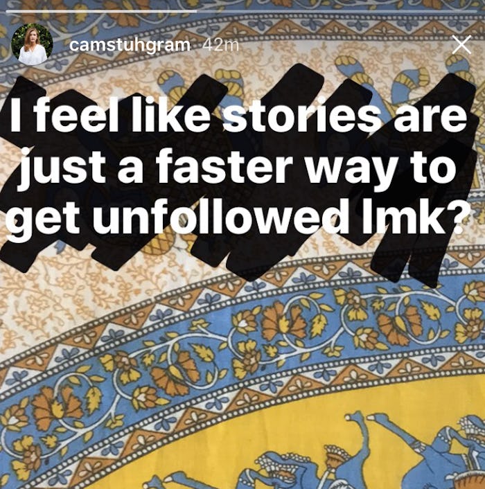 This attempt to get people posting more on Instagram has not been well-received by frequent Insta users. As it often goes, when an app or interface changes, people are adamantly against it, hoping that the brand in question might hear them and go back to how things were before. But truly, when has that ever worked? Remember Insta's algorithm uproar that happened not too long ago? Despite how upset users were and how Instagram's growth was the lowest it's been in awhile, the algorithm remains. I now find myself liking fewer pics of acquaintances because, sure, your trip to Greece with your girlfriend seems awesome but if I "like" it, will you then take priority in my feed over the @sadanimalfacts cartoons and posts that I don't throw likes at but definitely do enjoy? Can't risk it.