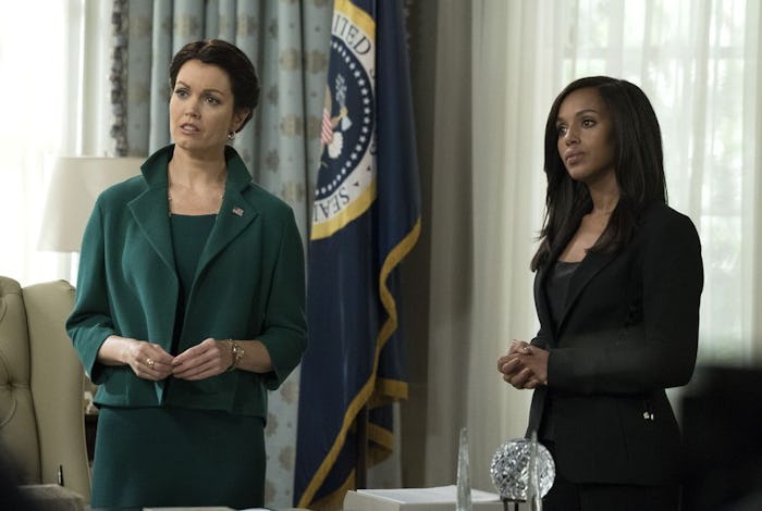 Season 5 came to a close with Frankie Vargas choosing Cyrus as his running mate and Mellie choosing Jake to be hers. Thus, many believed Season 6 would continue on the campaign trail leading up to the election, but that's not what happened at all. Due to the season being pushed back, premiering in the winter instead of the fall, Rhimes decided a time jump would be more appropriate since the show would no longer be running in time with the events currently happening in America anyway. Therefore, the season began on election night and it did not go as any one expected, to put it mildly. Here's what you need to know...