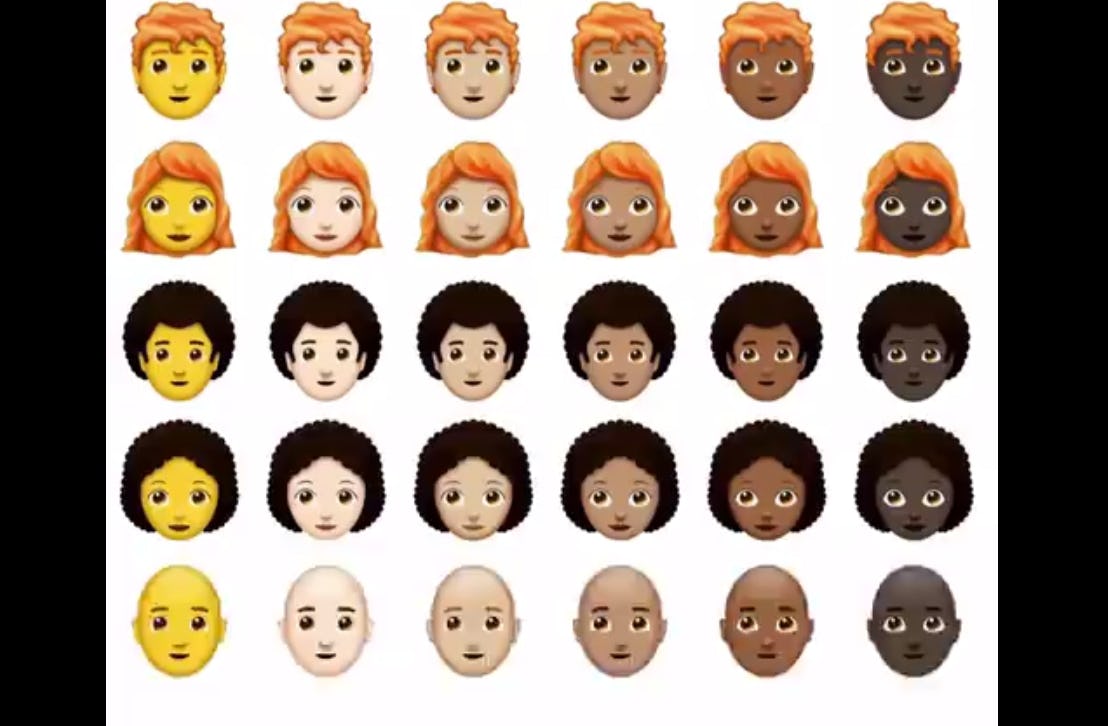 But redheads are not the only people who should be super excited about the new emoji update. This new update will include 157 brand new emojis, according to Time, and include people with no hair (because your bald dad needs representation, too) and curly hair.