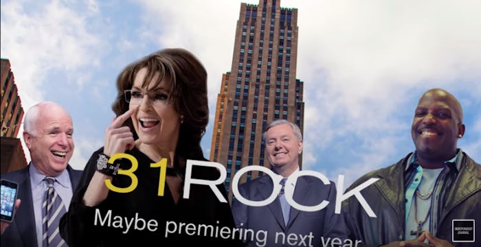 The skit, framed as a trailer for a new IJR comedy, features several cameos, including actual 30 Rock actor Kevin Brown in his role as Dot Com; Senator John McCain, who tapped Palin as his running mate in 2008, in Alec Baldwin’s role; and Republican senator Lindsay Graham as the show’s newest page. Graham ended his own presidential campaign this week.